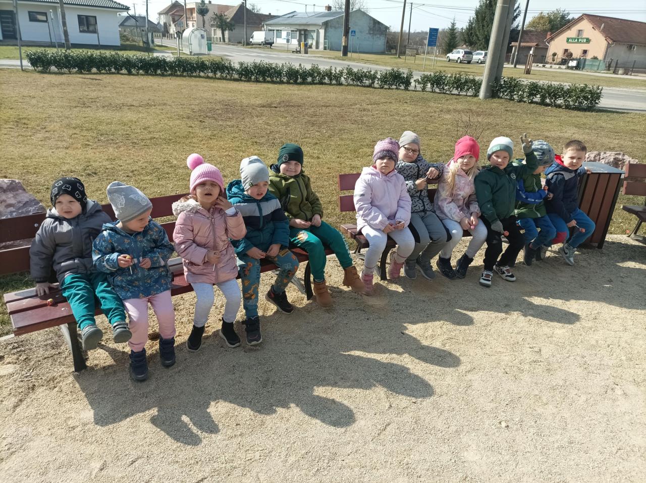 V rámci pobytu vonku sme sa vybrali na jarnú prechádzku do záhradného centra pozrieť kvietky a prebúdzajúcu sa jarnú prírodu. Cestou sme sa zastavili pred Obecným úradom, kde sme pozorovali bocianov. Stretli sme sa aj s pánom starostom, ktorý sa s deťmi porozprával a potešil ich sladkou maškrtou.