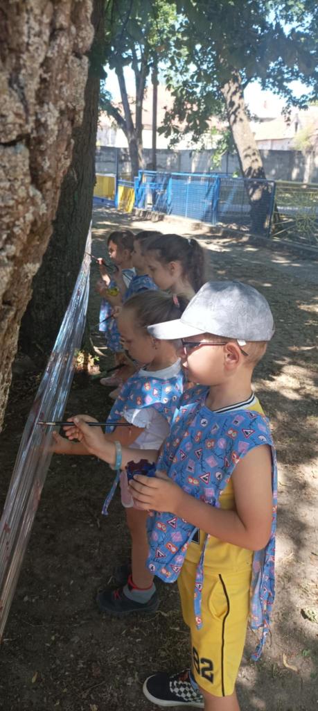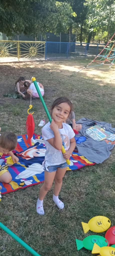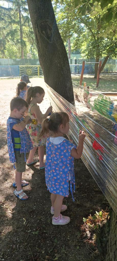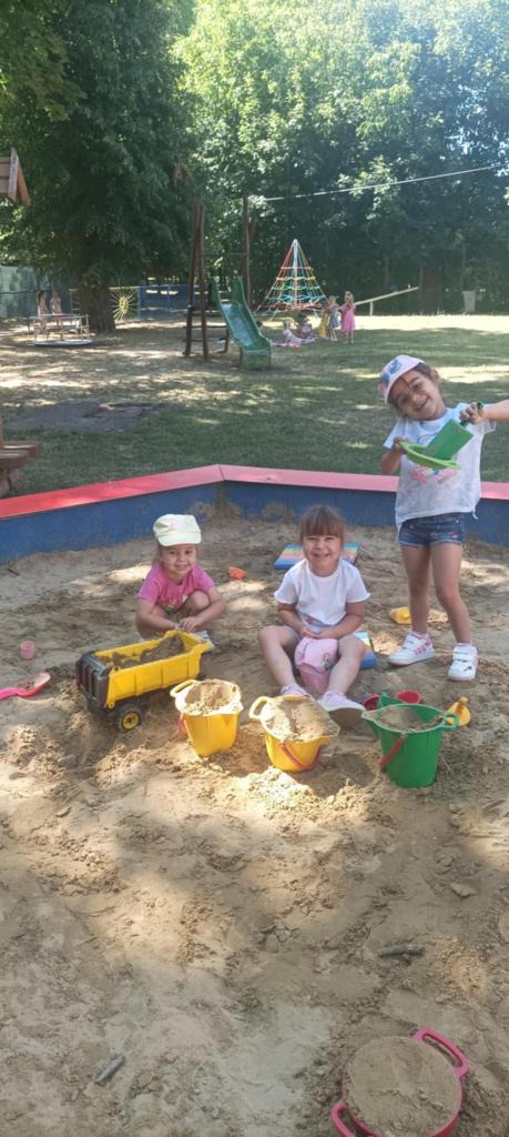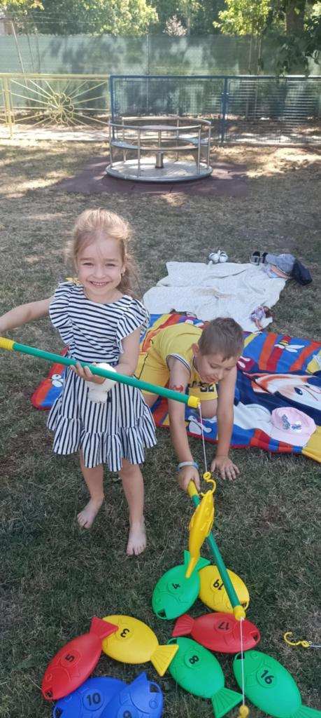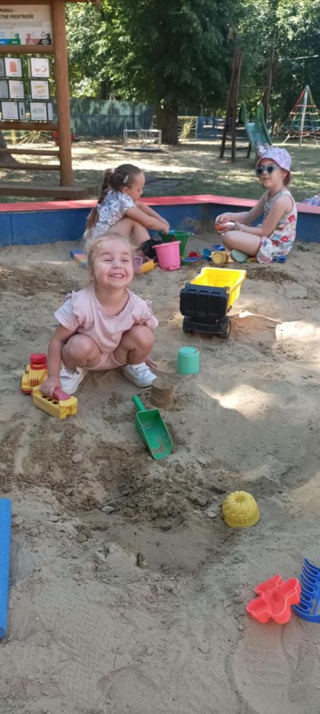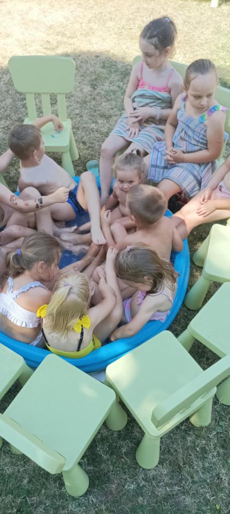 Prvý prázdninový týždeň začas horúcim slnečným počasím. Na deti v škôlke čakalo veľa aktivít na školskom dvore. Hry v pieskovisku, na preliezkach, čítanie a kreslenie pod stromami a na deke, chytali ryby, maľovali na fóliu. Ovlažili sa v bazéne, do ktorého sa všetci zmestili. To bolo radosti.