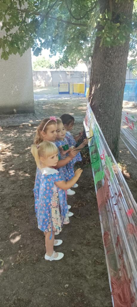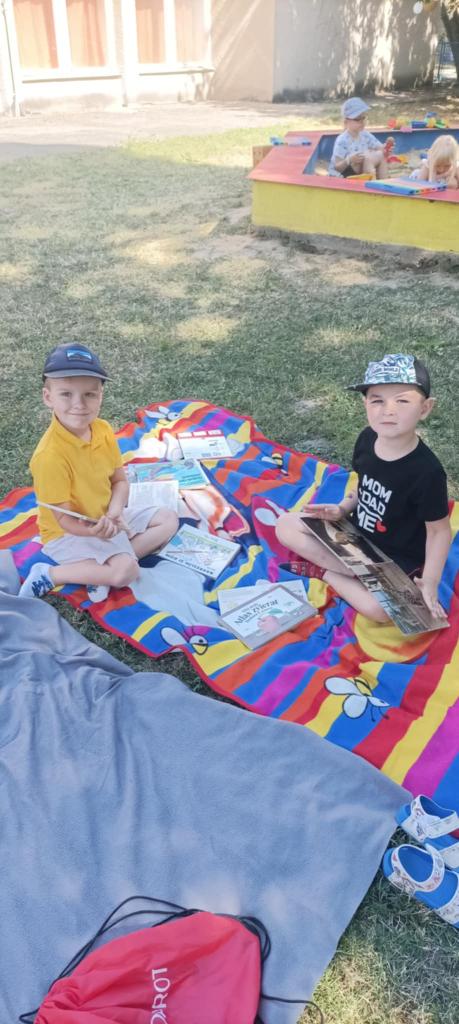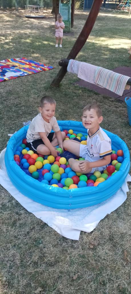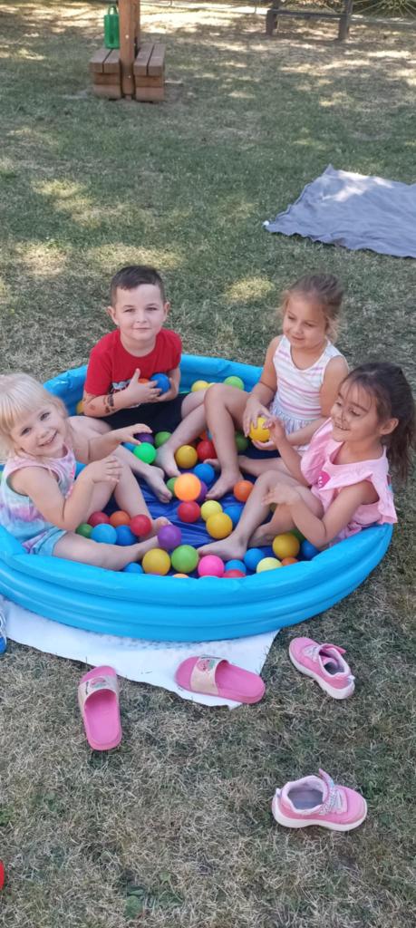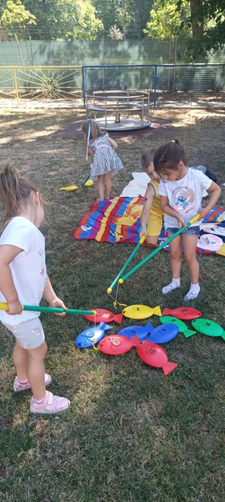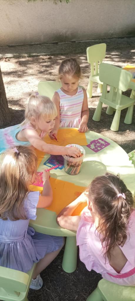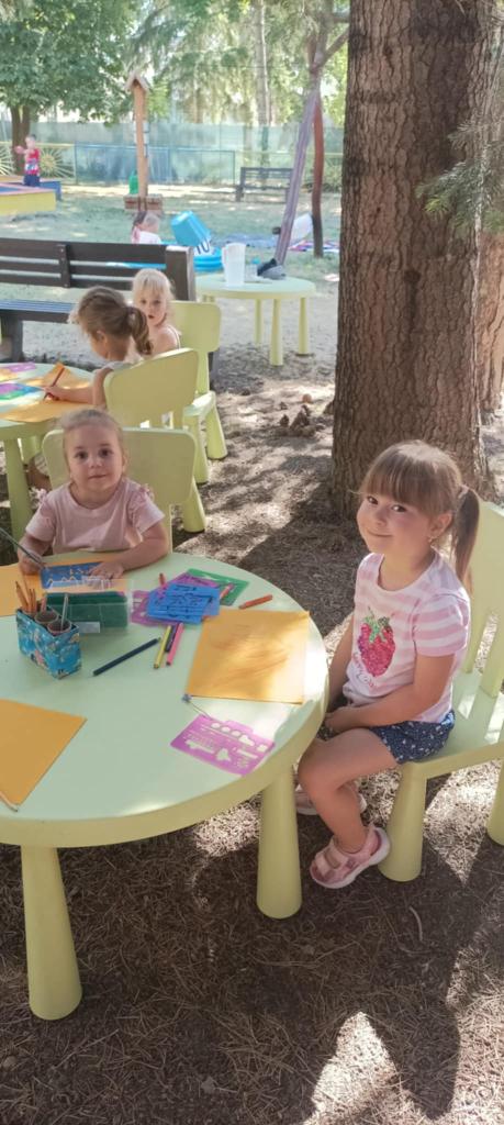 Prvý prázdninový týždeň začas horúcim slnečným počasím. Na deti v škôlke čakalo veľa aktivít na školskom dvore. Hry v pieskovisku, na preliezkach, čítanie a kreslenie pod stromami a na deke, chytali ryby, maľovali na fóliu. Ovlažili sa v bazéne, do ktorého sa všetci zmestili. To bolo radosti.