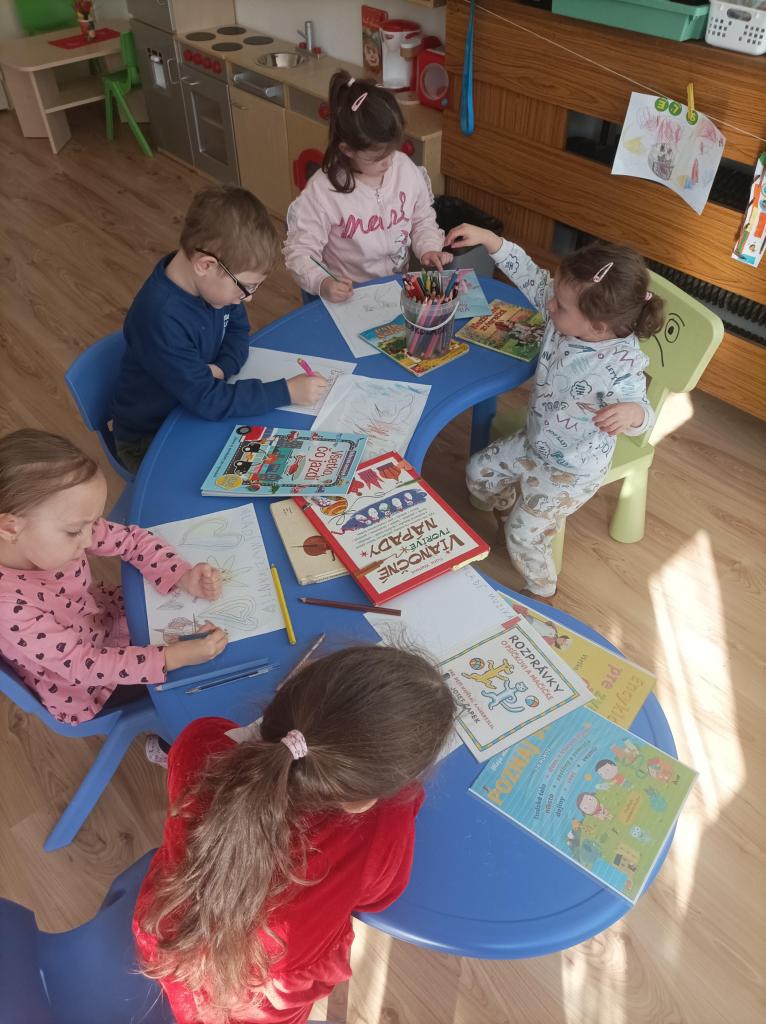 V MŠ sa snažíme v rámci výchovno-vzdelávacej činnosti o to, aby deti získali pozitívny vzťah k čítaniu a ku knihám ako takým. Čítanie príbehov a rozprávok podporuje detskú predstavivosť a pomáha deťom chápať okolitý svet. Detičky si priniesli svoje obľúbené knižky, z ktorých sme si čítali a kreslili