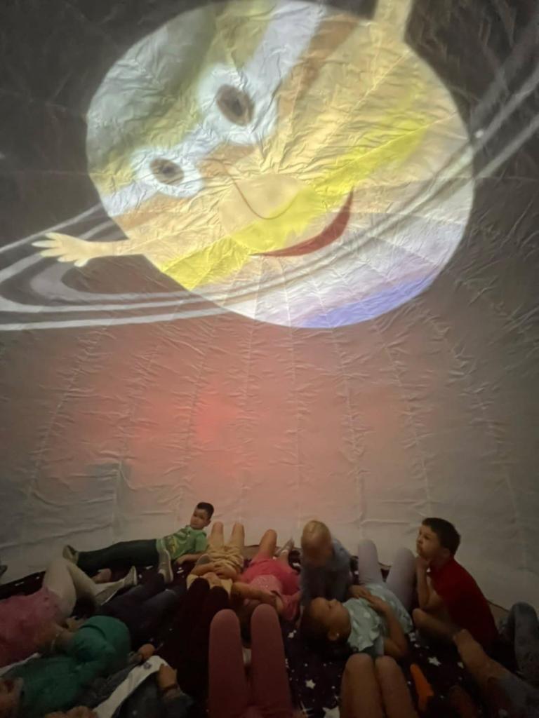 Materskú školu navštívila "Hvezdáreň na cestách". Zážitkové, interaktívne a náučné sférické premietanie v kupole planetária, kde formou edukačnej aktivity priblížili deťom fascinujúci svet vesmíru. Zaujal ich pútavý príbeh o slnečnej sústave a na záver kvíz, kde si deti utvrdili získané poznatky.