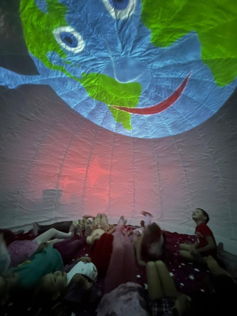 Materskú školu navštívila "Hvezdáreň na cestách". Zážitkové, interaktívne a náučné sférické premietanie v kupole planetária, kde formou edukačnej aktivity priblížili deťom fascinujúci svet vesmíru. Zaujal ich pútavý príbeh o slnečnej sústave a na záver kvíz, kde si deti utvrdili získané poznatky.