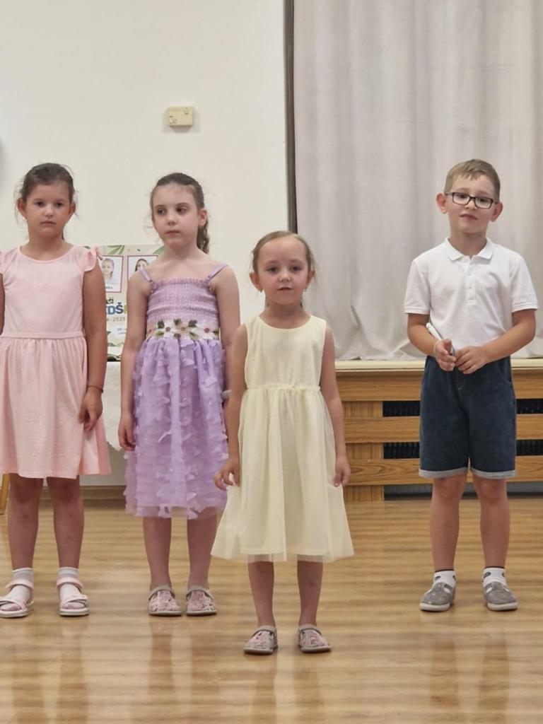 Brány MŠ sa už pomaly zatvárajú pre našich 4 predškolákov Natálku, Elišku, Rebeku a Jakubka, ktorí po prázdninách nastupujú do veľkej školy. Budúci prváci sa rozlúčili básničkami, piesňou aj tancom s mladšími kamarátmi a s personálom MŠ. Želáme Vám kamaráti veľa úspechov, nech sa Vám v škole darí.