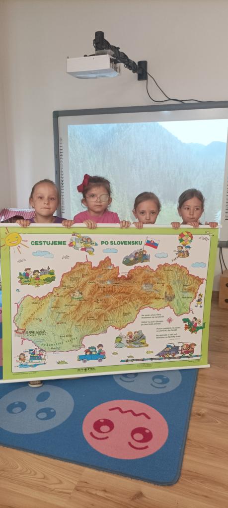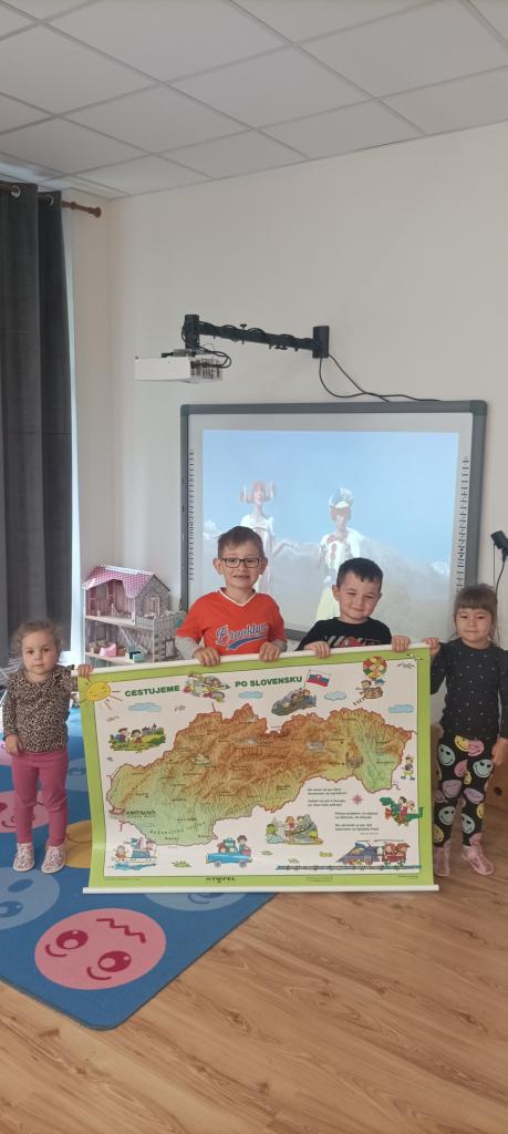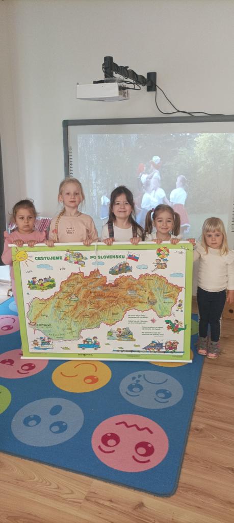 Slovensko je moja vlasť, tu mám mamku, tu chcem rásť, je tu ocko, láska, mier, Slovensko je krásna zem. Deti sa v rámci vzdelávacej aktivity naučili zaujímavosti o Slovensku, štátne symboly, zvyky a tradície, zhotovili Bratislavský hrad, cestovali prstom po mape a spoznávali krásy našej krajiny.
