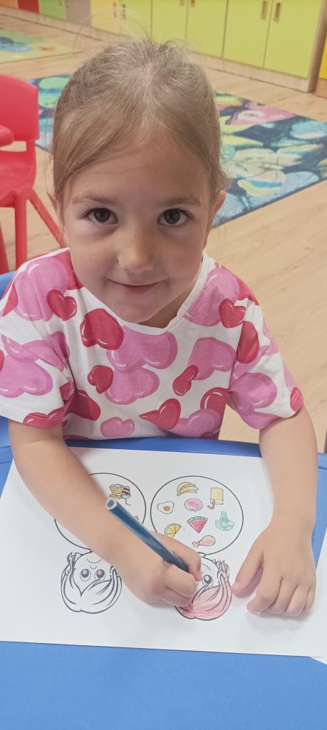 Deti počas aktivít sa učili pomenovať potraviny, triediť ich na zdravé a nezdravé, vystrihovali a nalepovali na tanier jedlá zdraviu prospešné. Správne priraďovali potraviny do jednotlivých poschodí potravinovej pyramídy. Precvičili si grafomotoriku, jemnú motoriku a pamäť.