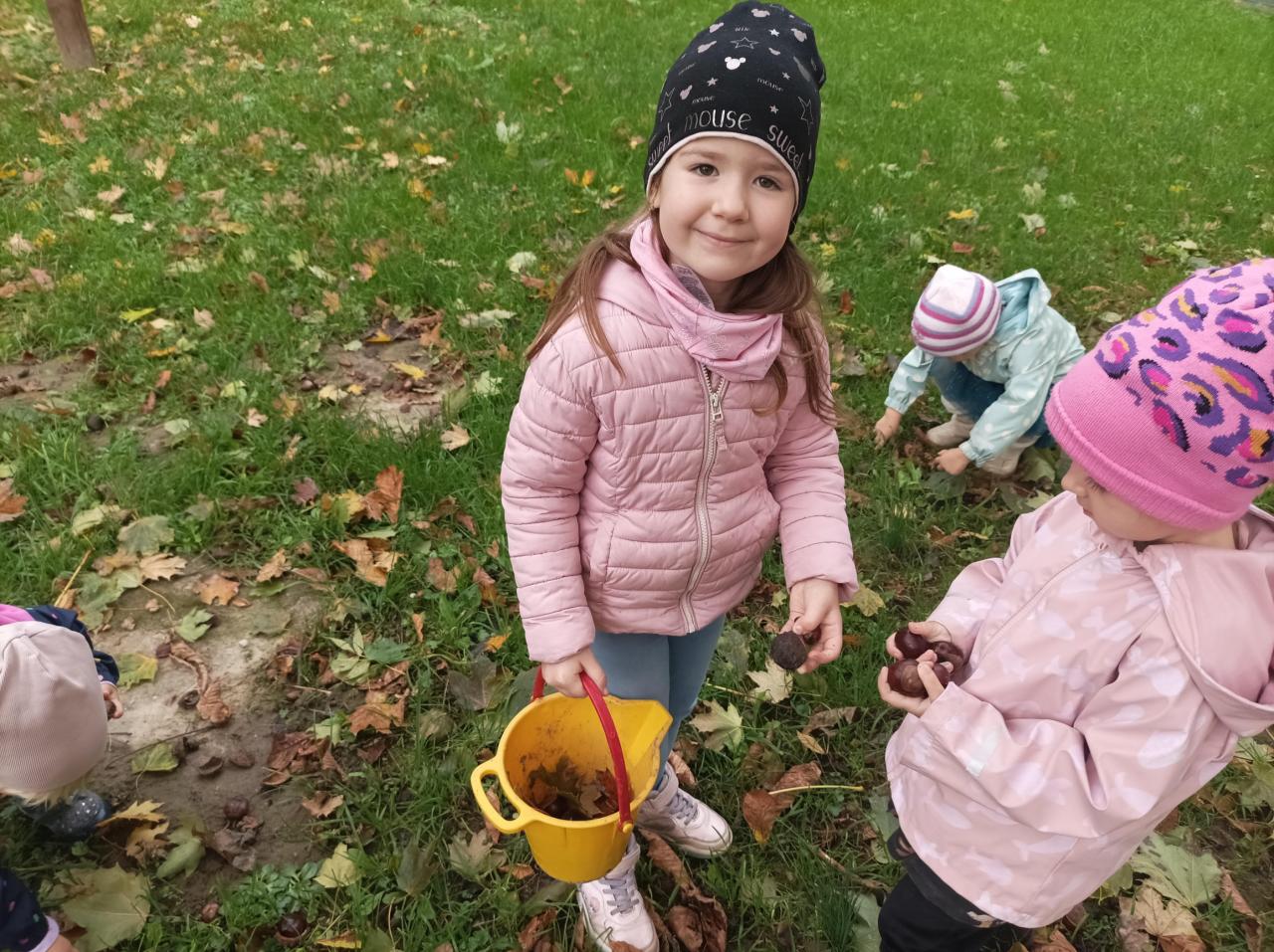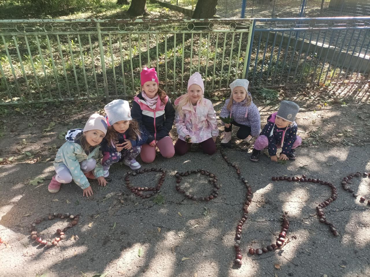 Neodmysliteľnou súčasťou nášho pobytu na školskom dvore je aj zbieranie gaštanov. Detičky plným nasadením zbierali do vedierok a predbiehali sa, kto nazbiera najviac. Potom si z nich vytvárali rôzne tvary. Deti sa vyšantili a vyzdobili si aj chodbu materskej školy. To bolo nadšenia a radosti.